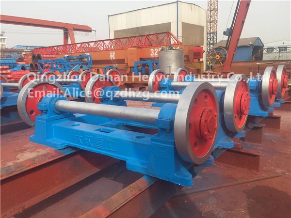 The centrifugal machine is mainly used to manufacture the centrifugal equipments manufacturing the reinforced concrete drainpipes, driving the spinning of the drainpipe concrete pipe mold loaded with some concrete and reinforcing steel with a certain mixing ratio at different speeds, and  the solid phase particles of concrete in steel mould will be centrifugal settling in the steel mould inner surface under centrifuge, meanwhile draining the excessive water, thus forming compacting concrete structure namely reinforcing concrete drainpipe. The machine mainly consists of riding wheels, shafts, bearing block, bearing, V-blet pulley, base and electromagnetic speed-controlling motor.